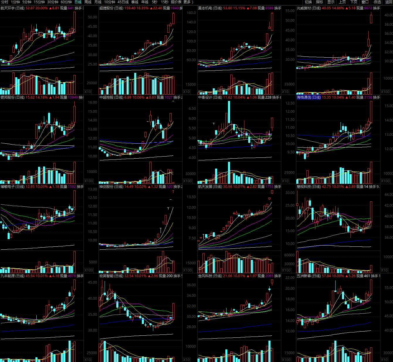 密切关注:亚光科技、航天环宇、超捷股份、昊志机电、光威复材、银邦股份。目前均走出强势争夺20cm龙头的启动迹象。