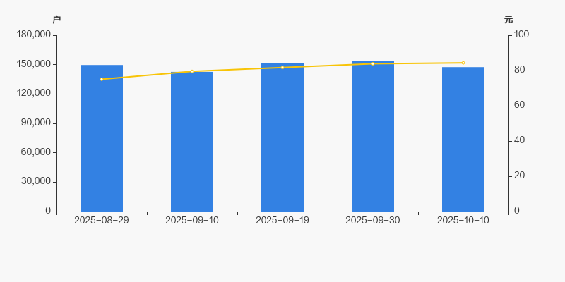 2025年8月29日至今,公司股东户数有所下降,区间跌幅为1.46%。2025年8月29日至2025年10月10日区间股价上涨12.40%。