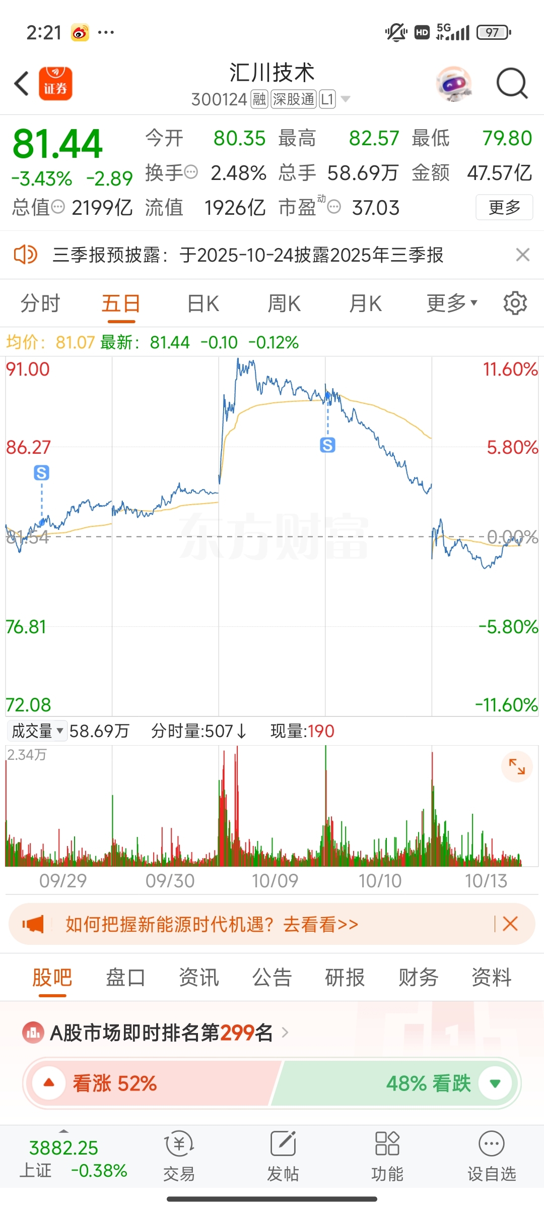 $汇川技术(SZ300124)$ 老油条们接不接。我都有点不敢接