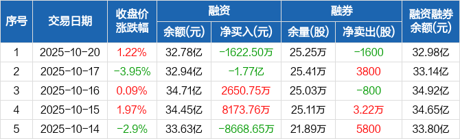 汇川技术:融资净偿还1622.5万元,融资余额32.78亿元(10-20)