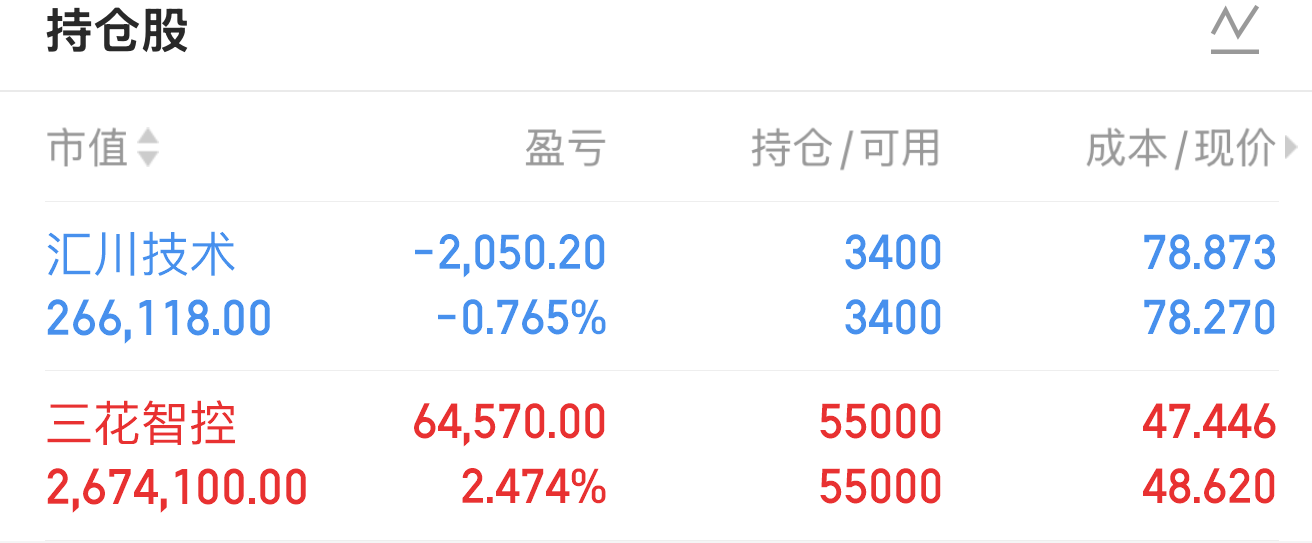 聊下持仓情况,三花智控继续捂着,新进汇川技术,安泰科技、卧龙电驱走了
