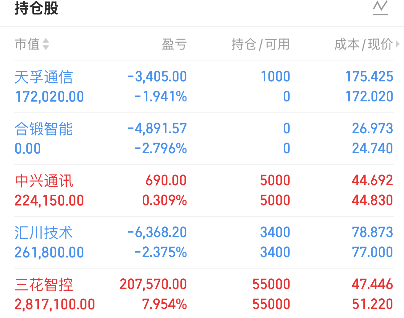 今日对持仓进行优化调整:果断处理业绩不及预期的合锻智能,同时逢低布局天孚通信。
