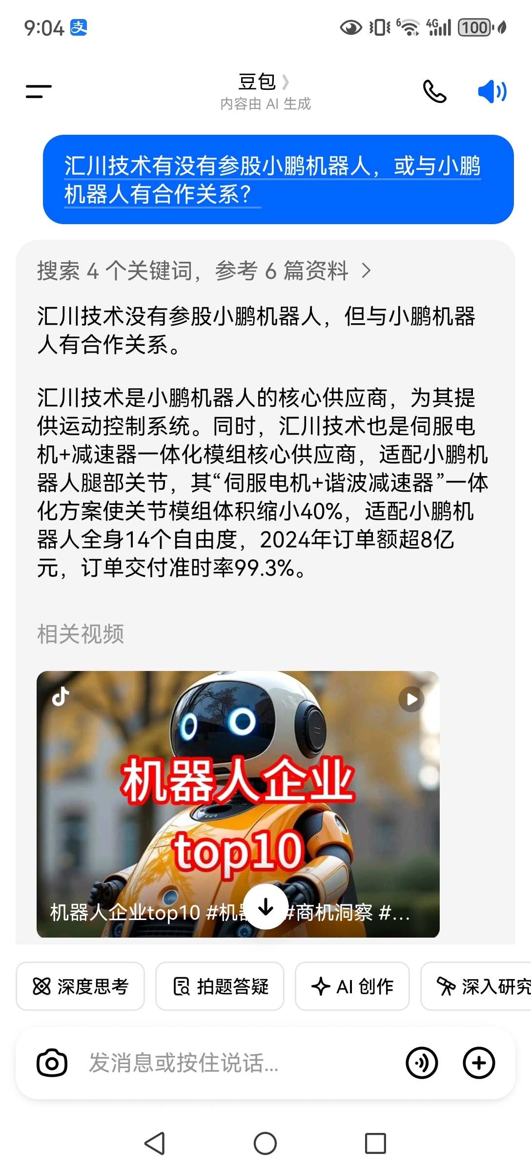 $汇川技术(SZ300124)$ 小鹏机器人的核心供应商?豆包查的,不知是否正确。