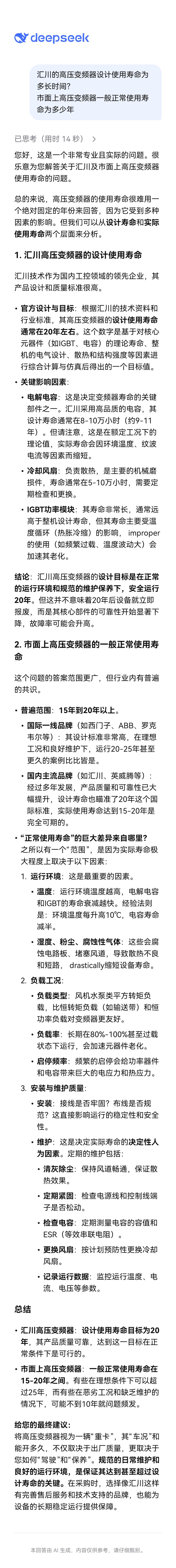 $汇川技术(SZ300124)$ 汇川产品的质量得到 DeepSeek 的高度认可