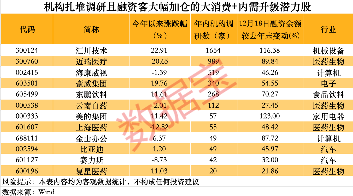 机构扎堆调研的大消费+内需升级潜力股出炉,融资客重点埋伏