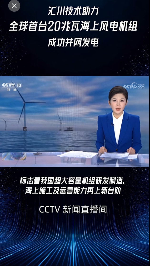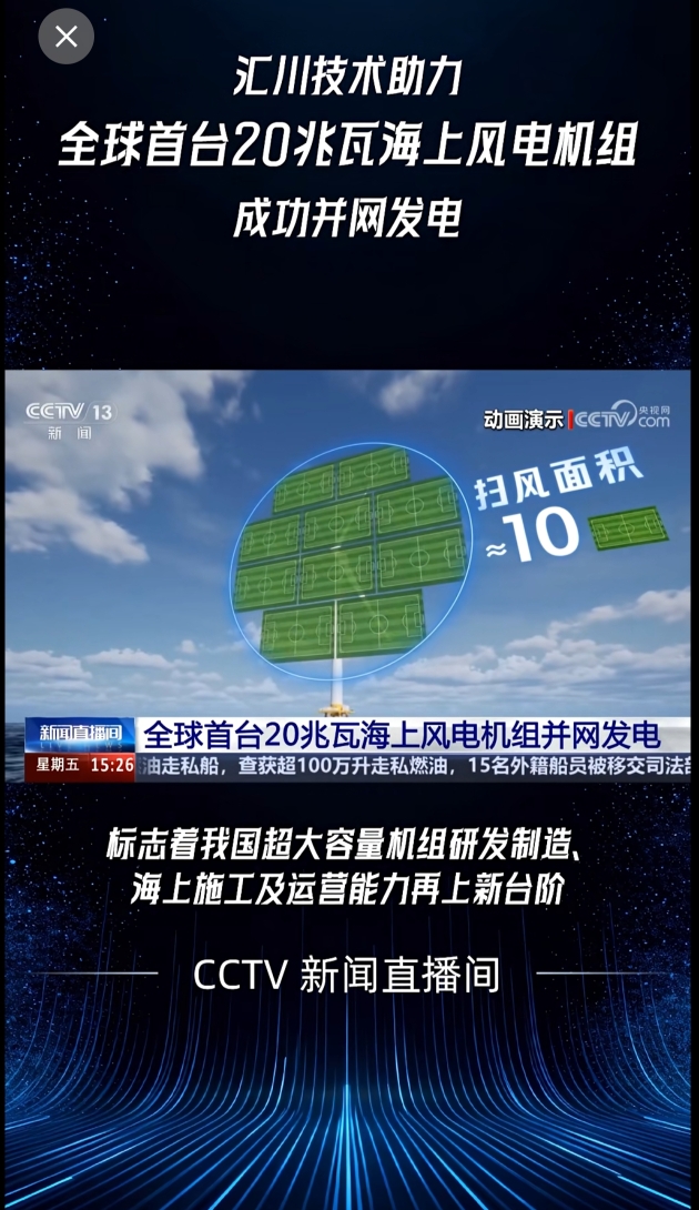 汇川技术助力全球首台二十兆瓦海上风电机组。