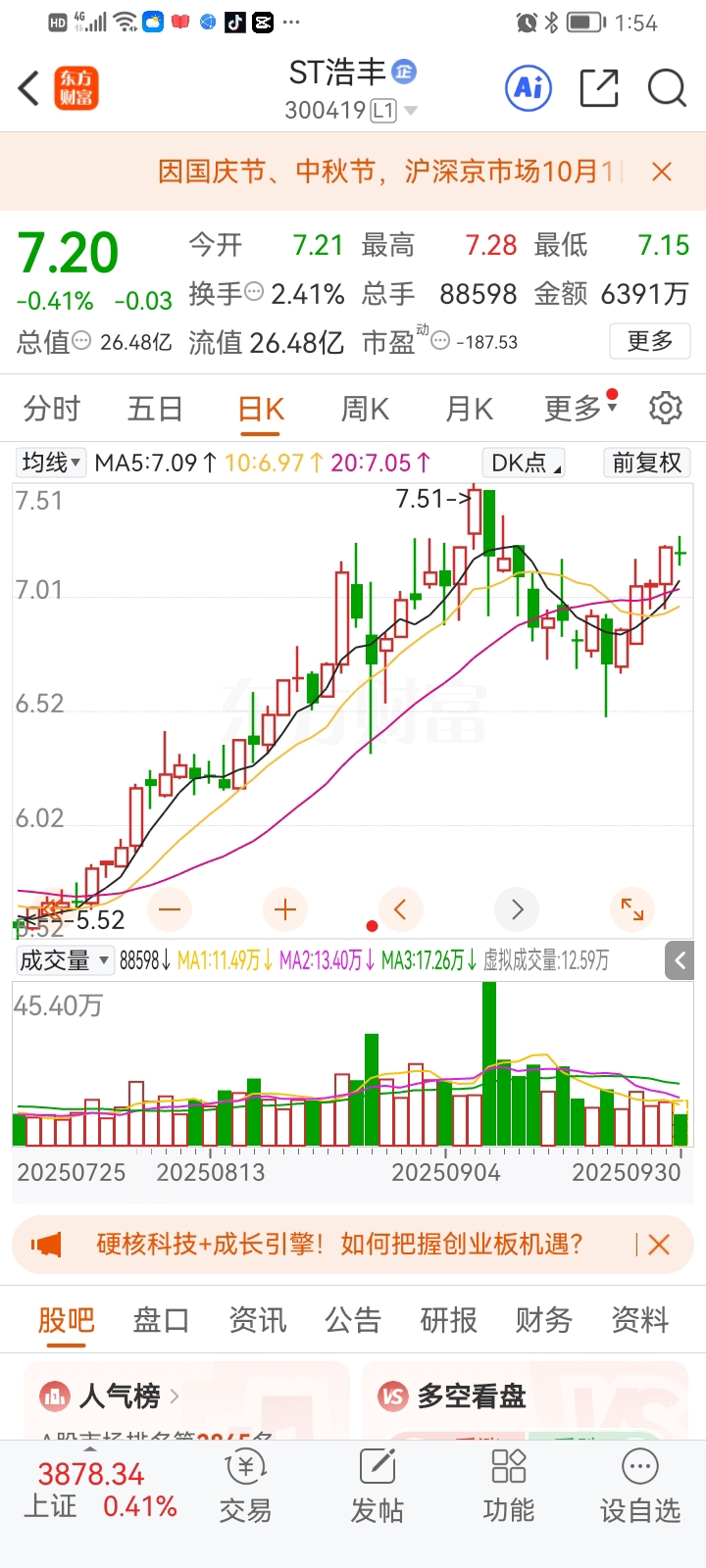 买入底仓,有跟的吗?浩丰即将摘帽和换大股东借壳,相对安全。