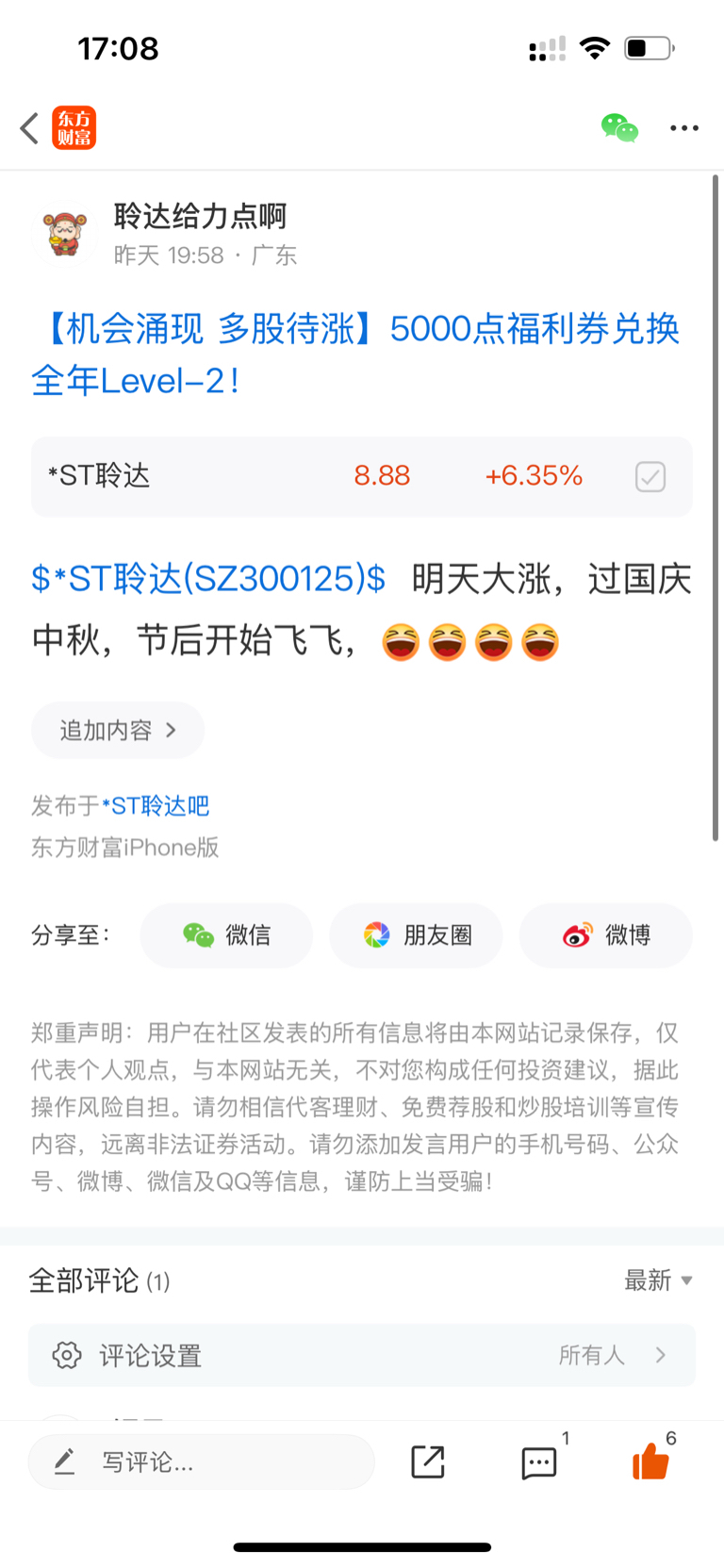 温馨提示: 1.根据《证券法》规定,禁止编造、传播虚假信息或者误导性信息,扰乱证券市场;2.用户在本社区发表的所有资料、言论等仅代表个人观点,与本网站立场无关,不对您构成任何投资建议。用户应基于自己的独立判断,自行决定证券投资并承担相应风险。《东方财富社区管理规定》