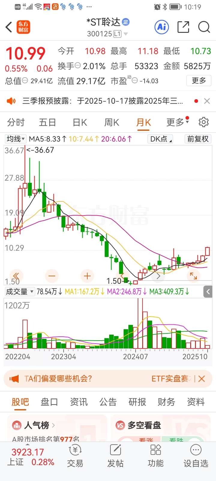 $*ST聆达(SZ300125)$ 达子看看月线还在历史底部,转型半导体,中长线必破历史新高,有闲钱买入无风险套利。$*ST正平(SH603843)$ $*ST沐邦(SH603398)$