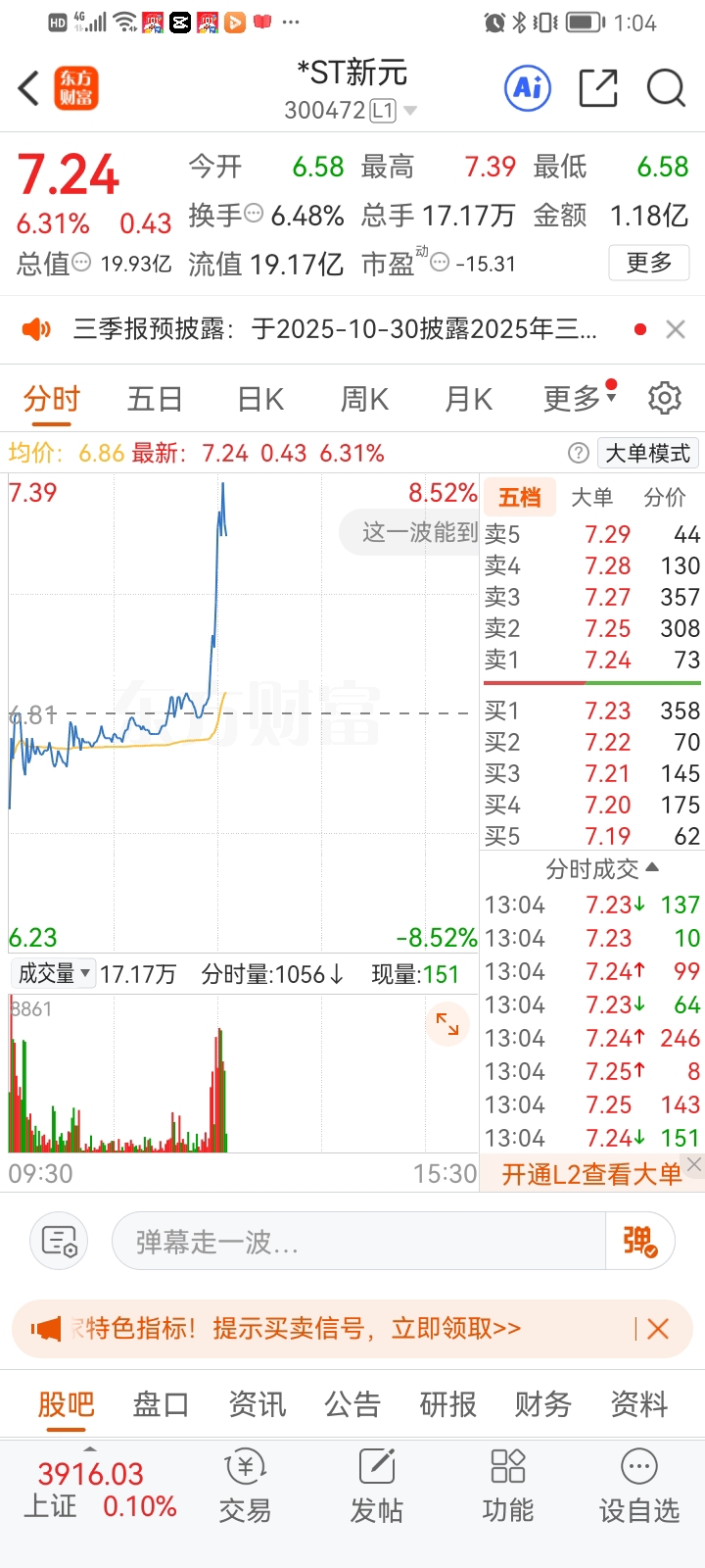 $*ST新元(SZ300472)$ 直线拉升,$*ST聆达(SZ300125)$ 小庄还在打压,达子基本都没人卖了,都等看今晚季报。