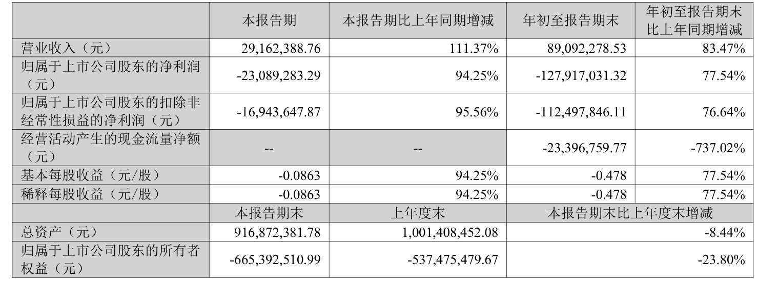 中证智能财讯 *ST聆达(300125)10月17日披露2025年第三季度报告。前三季度公司实现营业总收入8909.23万元,同比增长83.47%;归母净利润亏损1.28亿元,上年同期亏损5.7亿元;经营活动产生的现金流量净额为-2339.68万元,上年同期为367.28万元;报告期内,*ST聆达基本每股收益为-0.478元。