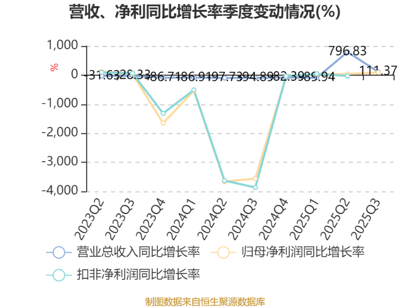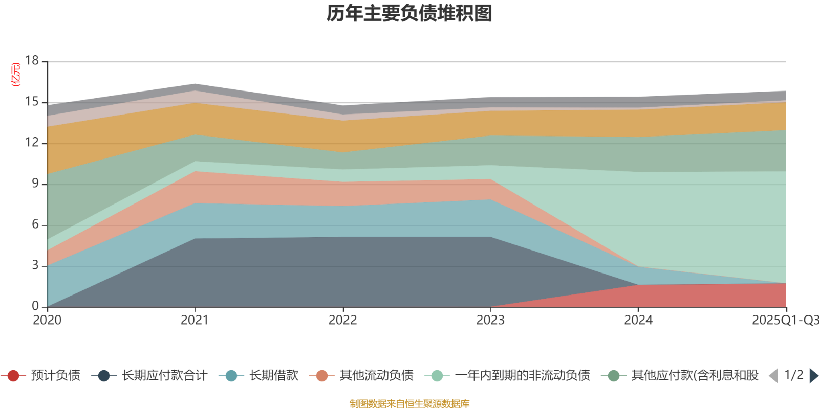 负债重大变化方面,截至2025年三季度末,公司一年内到期的非流动负债较上年末增加18.26%,占公司总资产比重上升20.2个百分点;长期借款较上年末减少100%,占公司总资产比重下降13.23个百分点;其他应付款(含利息和股利)较上年末增加18.5%,占公司总资产比重上升7.52个百分点;预计负债较上年末增加6.6%,占公司总资产比重上升2.63个百分点。