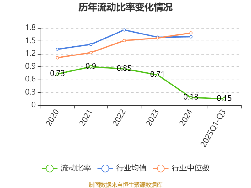 2025年前三季度,公司流动比率为0.15,速动比率为0.15。