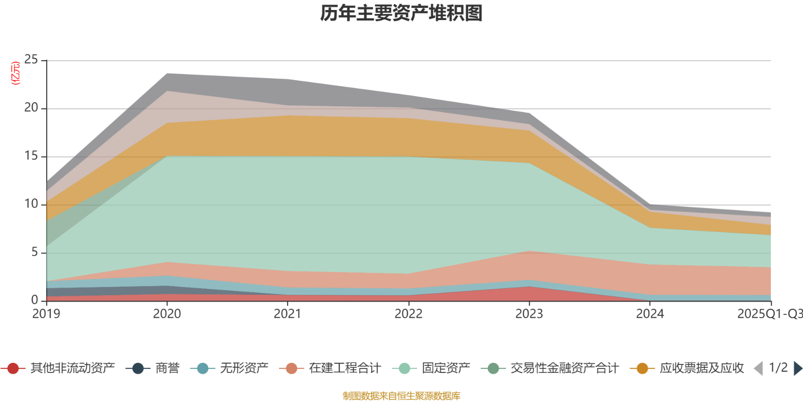 资产重大变化方面,截至2025年三季度末,公司货币资金较上年末增加308.81%,占公司总资产比重上升7.05个百分点;应收票据及应收账款较上年末减少36.61%,占公司总资产比重下降5.09个百分点;固定资产较上年末减少12.33%,占公司总资产比重下降1.62个百分点;其他流动资产较上年末减少60.41%,占公司总资产比重下降0.66个百分点。