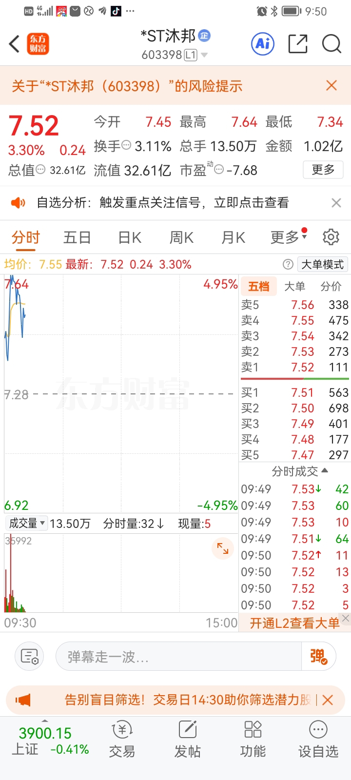 $*ST聆达(SZ300125)$ 沐邦己止稳,有看好的可买入。$*ST正平(SH603843)$ $*ST新元(SZ300472)$