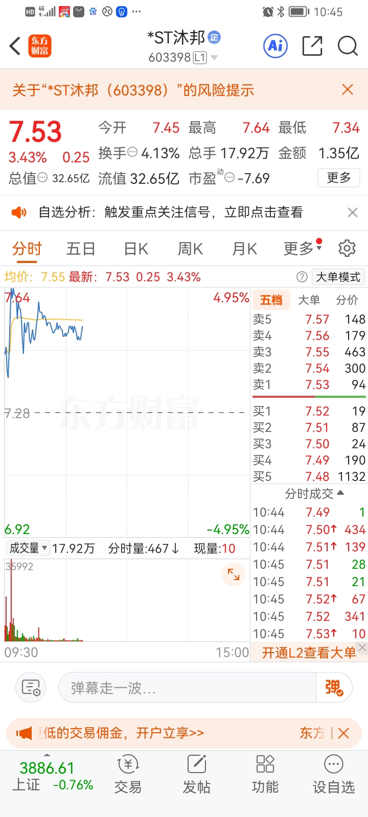 $*ST聆达(SZ300125)$ 出来的达子跟我买入沐邦,邦子下周出监管,此时不买下周追高吗?$*ST美谷(SZ000615)$ $*ST新元(SZ300472)$