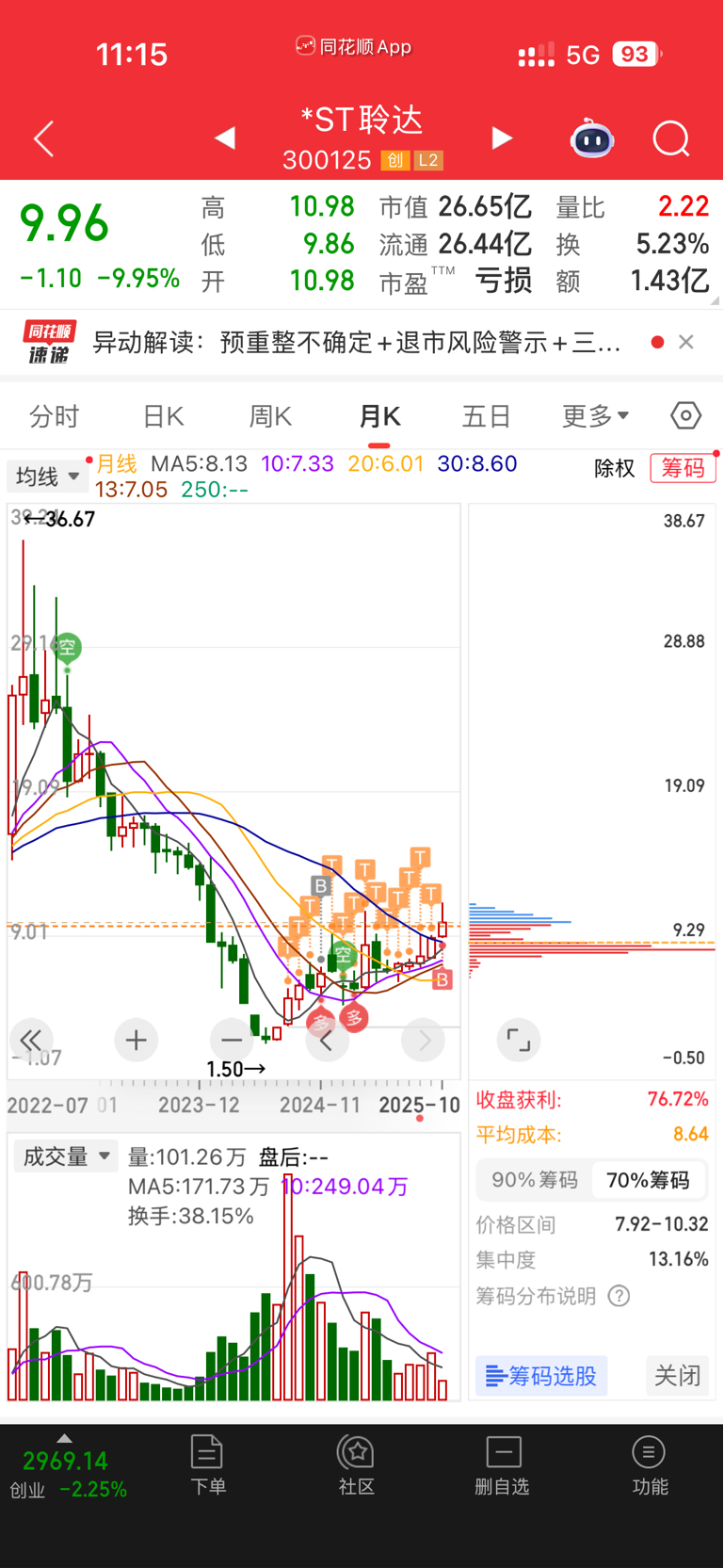 $*ST聆达(SZ300125)$ 3块的本,随便砸
