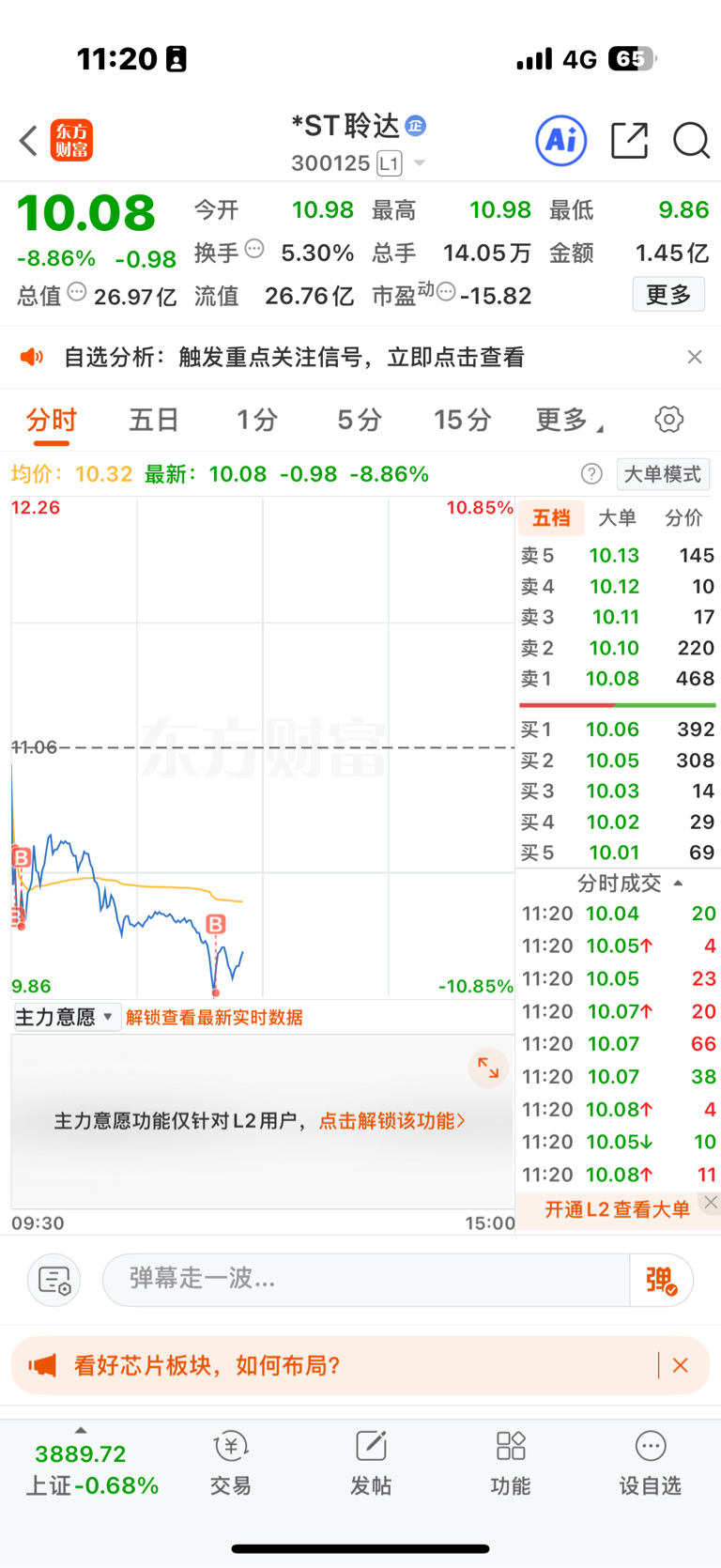 $*ST聆达(SZ300125)$ 越跌越加仓!见证聆达起跳前的深蹲!
