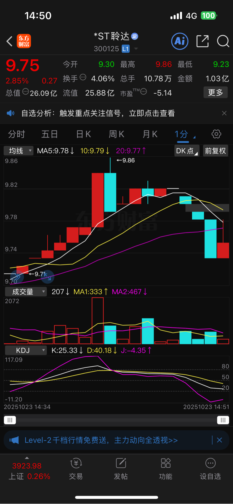 $*ST聆达(SZ300125)$ 说这么坏 老是跳空的下砸,给你顶上去