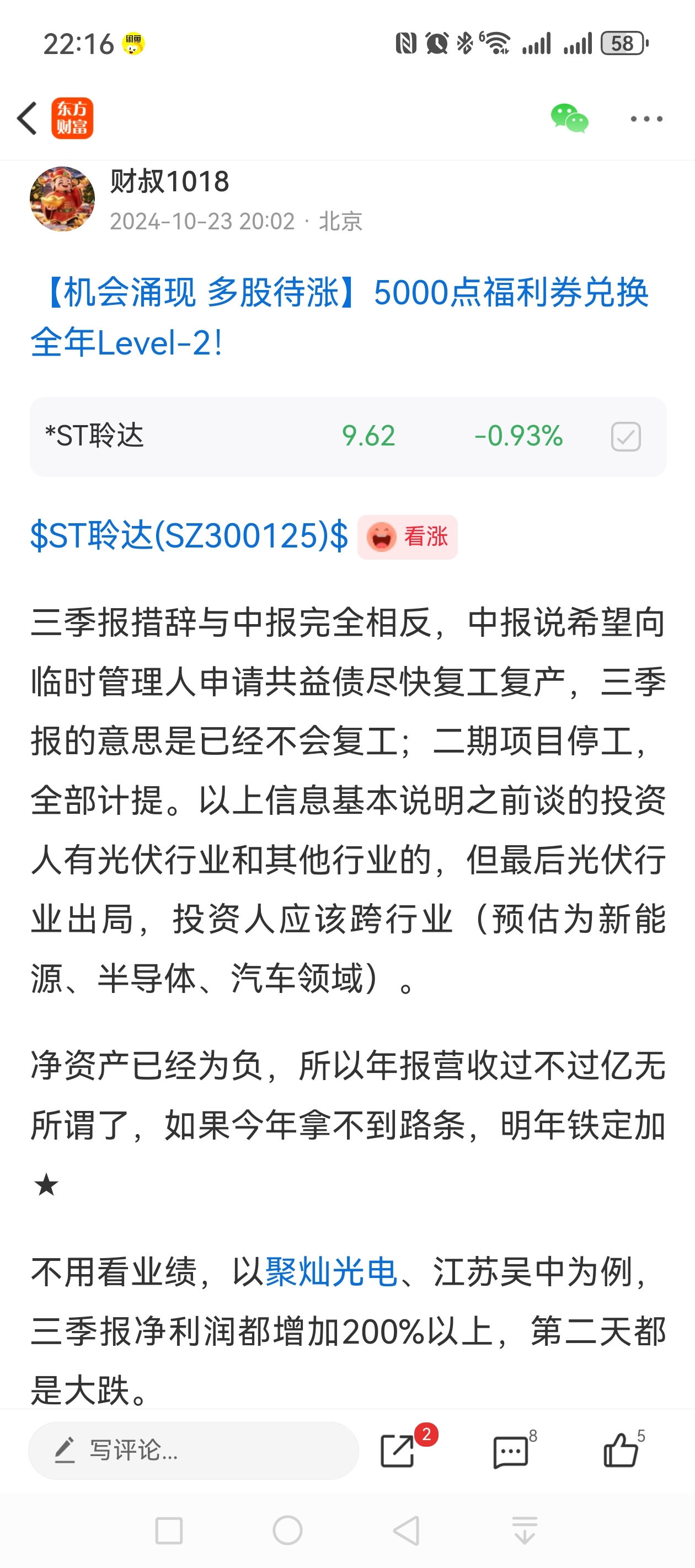 $*ST聆达(SZ300125)$ 给去年这时候自己的判断鼓鼓掌~