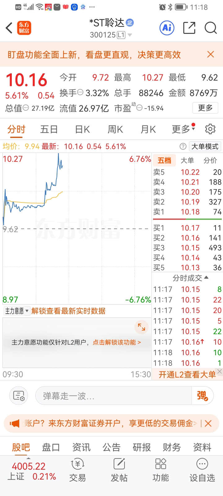$*ST聆达(SZ300125)$ 今天达子十元处多次放大单压着,也许今晚就下路条,上周$*ST景峰(SZ000908)$ 也是周二下路条。$*ST沐邦(SH603398)$