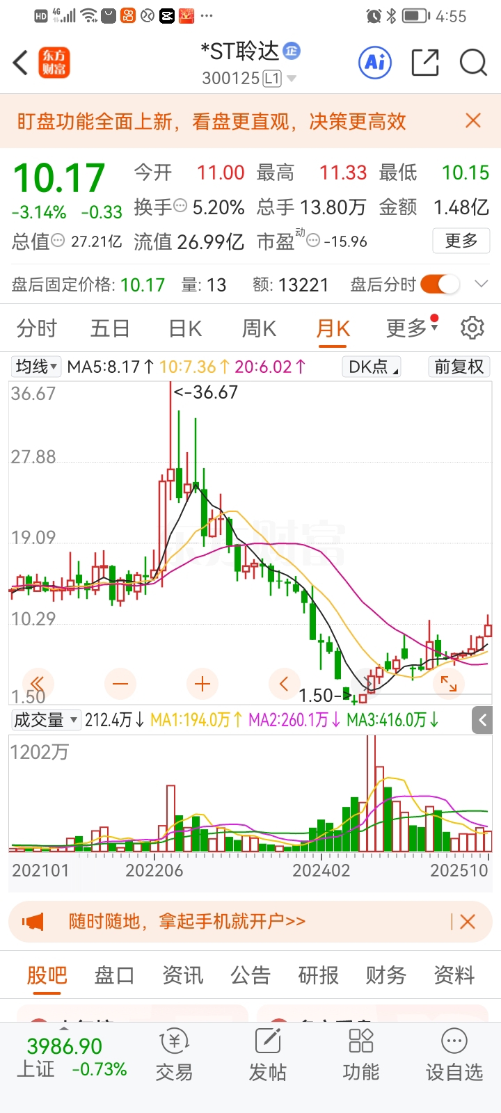 $*ST聆达(SZ300125)$ 达子看看月线才到哪,四家国资入股的半导体重整股,中长线很安全,有闲钱买入放半年收益不比你做短线少。$*ST正平(SH603843)$ $*ST沐邦(SH603398)$