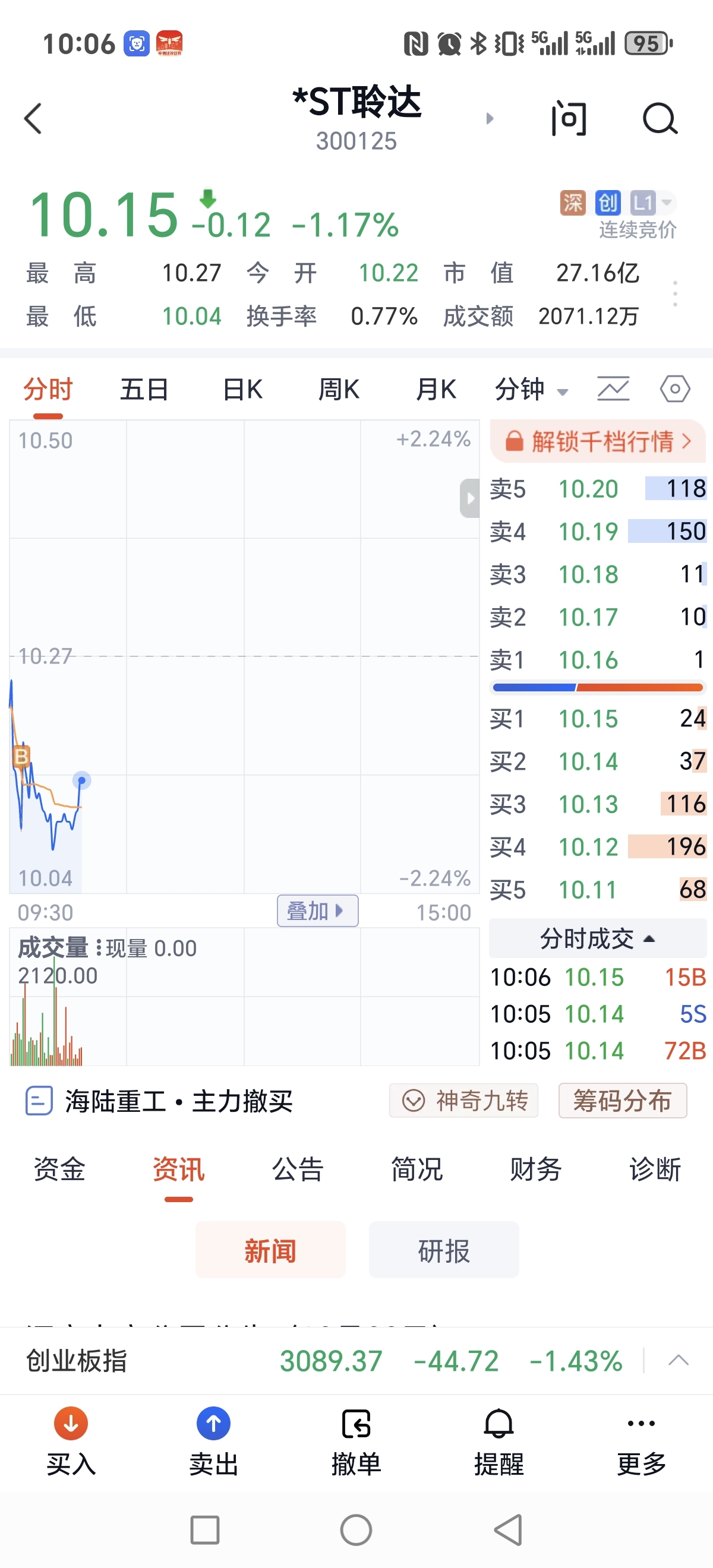 $*ST聆达(SZ300125)$ 我没有退缩,10.11元加仓了!