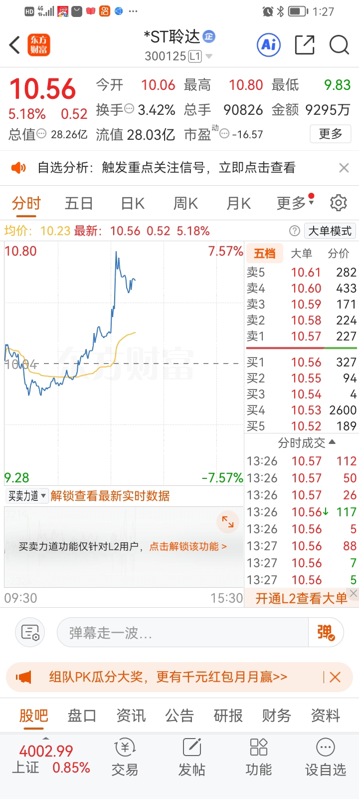 $*ST聆达(SZ300125)$ 达子今晚下路条吗?资金大幅流入。$*ST沐邦(SH603398)$ $*ST星光(SZ002076)$