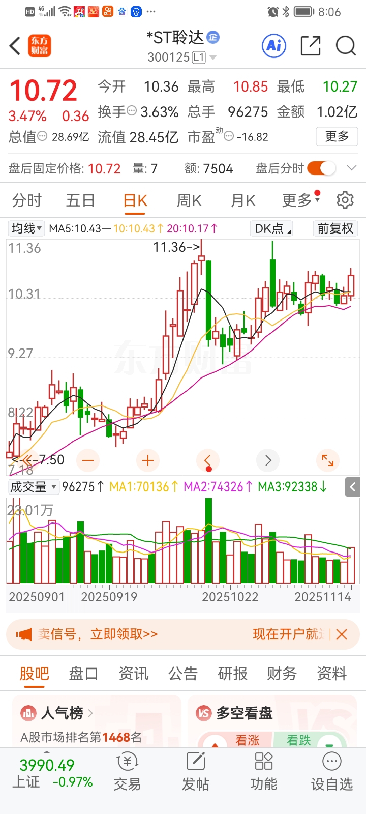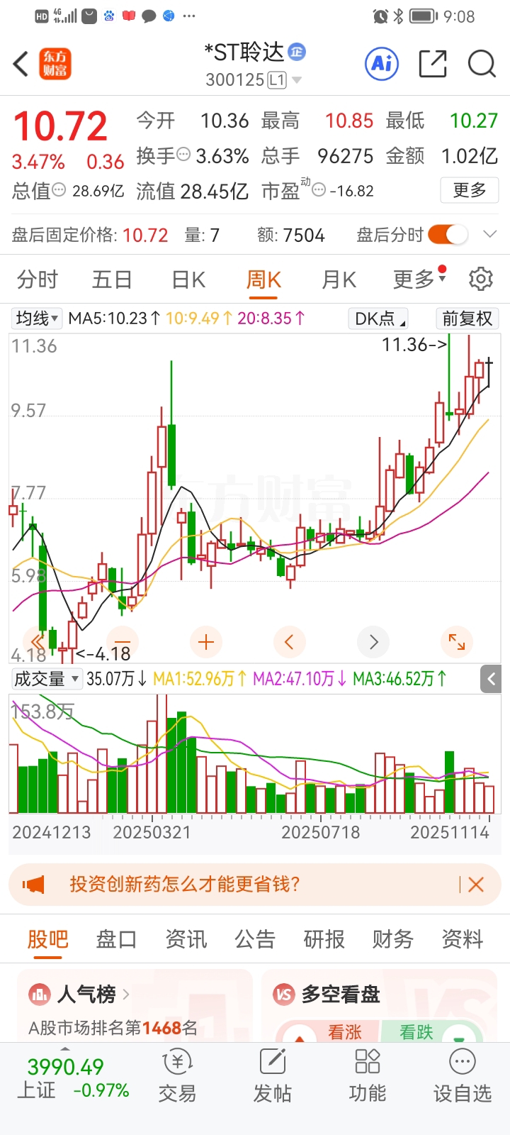 $*ST聆达(SZ300125)$ 昨晚$*ST美谷(SZ000615)$ 重整受理了,美姑娘在三元多处横盘时久,重整批前涨到五元,达子在十元处横盘也时久,新进几大牛散成本接近九元,股东数高度集中,近期公布只剩9000多人,是重整股中股东数最少的半导体重整股,加上四大国资做为财投新进,产投为国内半导体先进企业,近期重整股中最值得下路条只有达子了,也许可能玩美姑娘潜伏等路条的资金会逐渐撤到达子,甚至场外其偏好玩重整股资金也会关注,加上达子是300头sT,风险资金更偏好介入,买股不就买个预期吗?技术上上周达子周线做了个T线,加上路条批复关键点,达子下周可能走主升。$*ST景峰(SZ000908)$ $*ST美谷(SZ000615)$