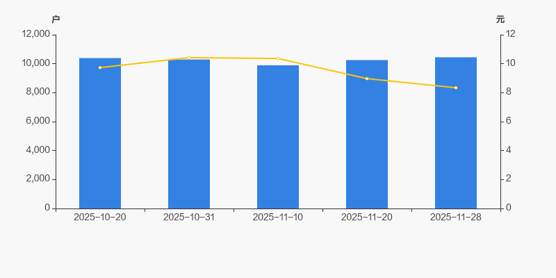 2025年10月20日至今,公司股东户数有所增长,区间涨幅为0.52%。2025年10月20日至2025年11月28日区间股价下降14.29%。