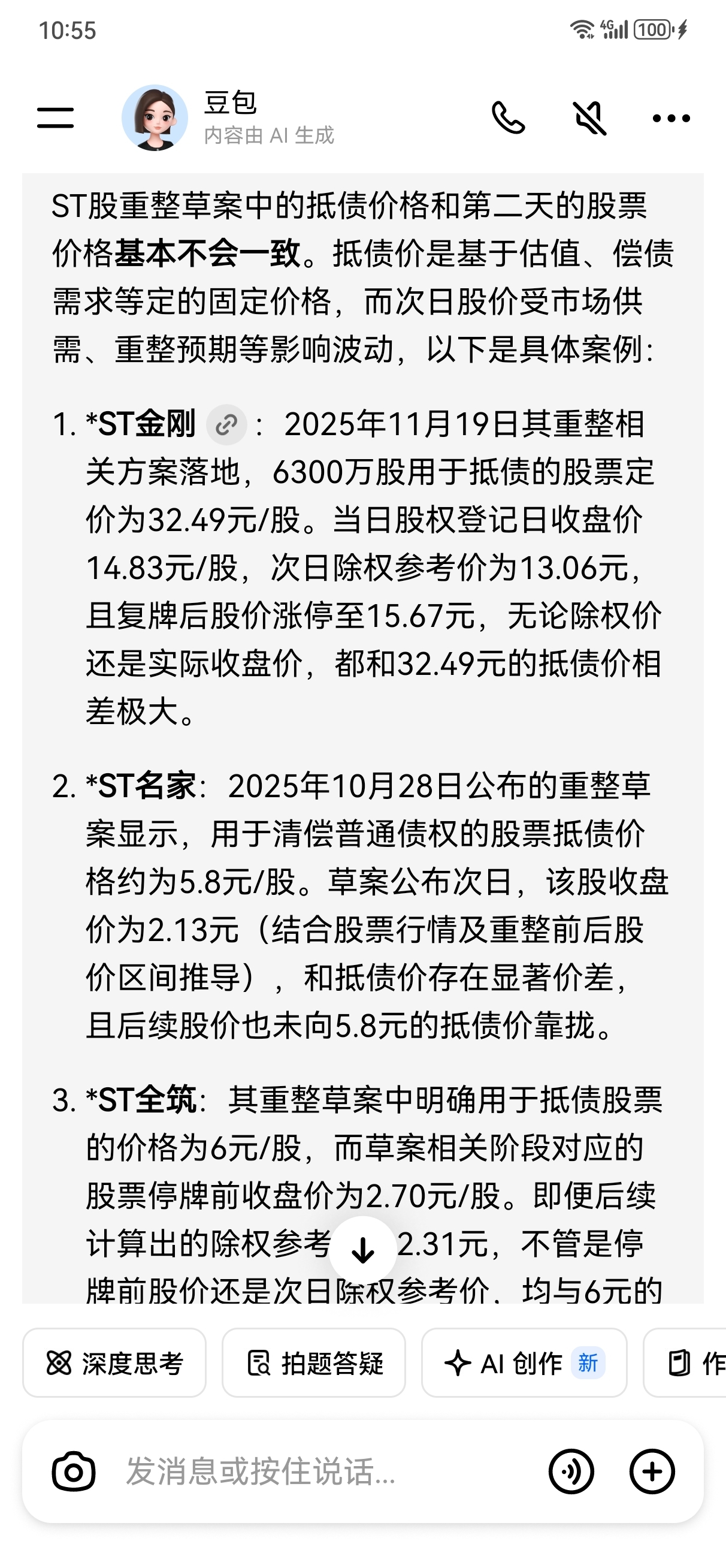 哎,明天看主力心情吧,好像只有ST练石现在股价是高于抵债价格的。