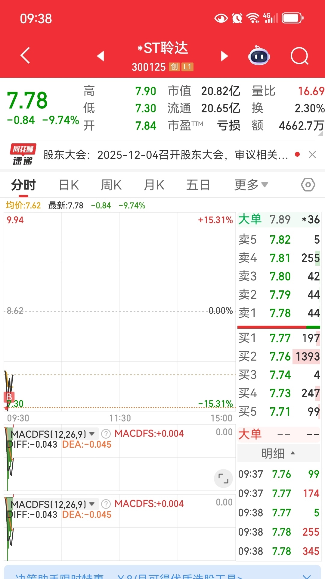 $*ST聆达(SZ300125)$ 昨天挂低两分钱想买入五千股的没买到,今天就买8000股吧