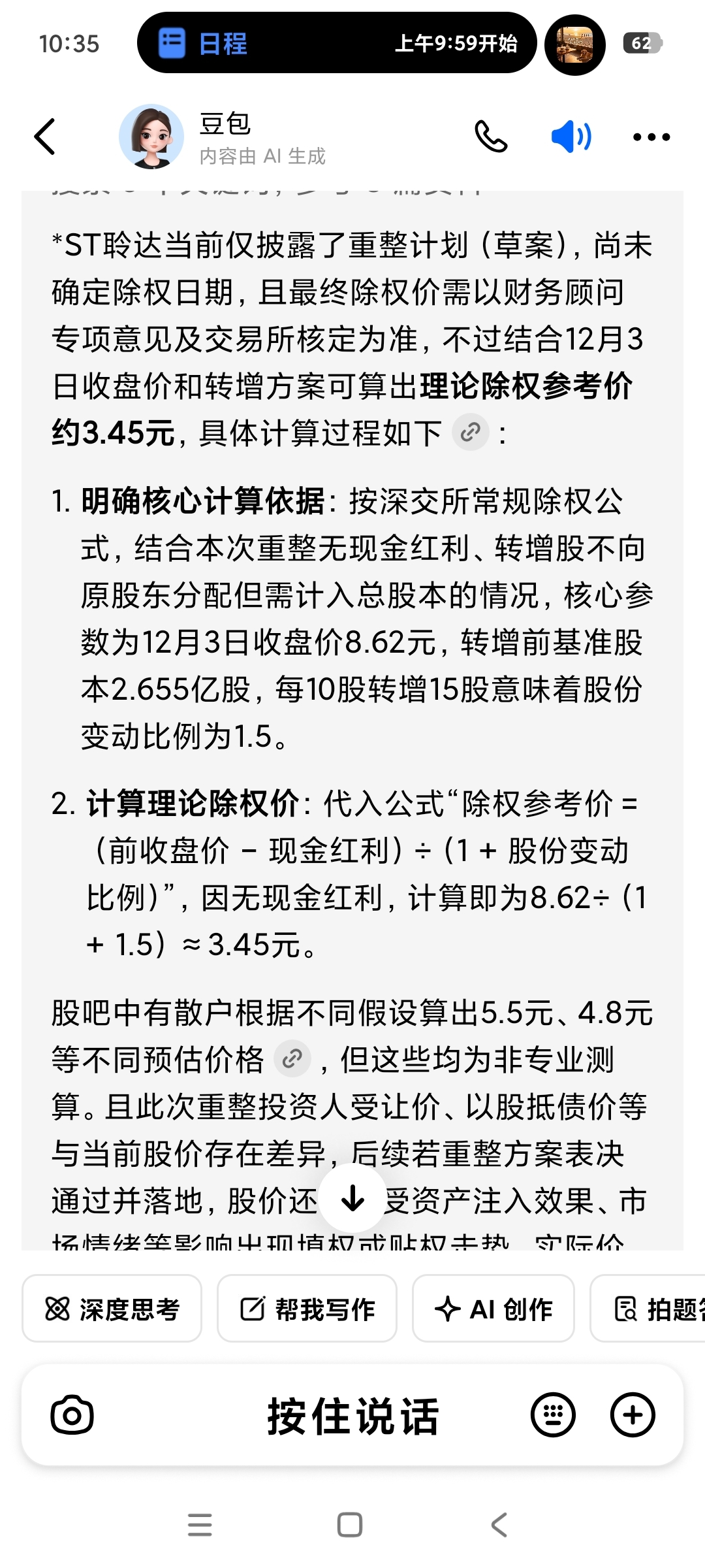 $*ST聆达(SZ300125)$ 豆包说除权3.5元