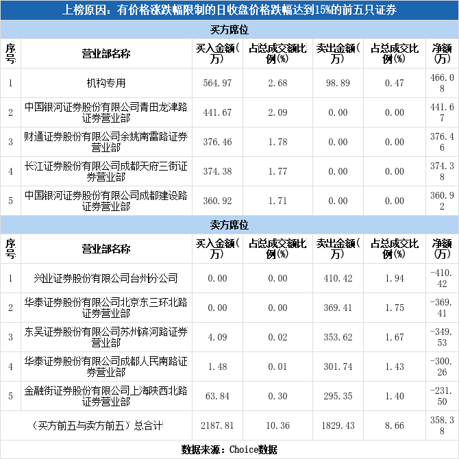 机构现身龙虎榜,*ST聆达下跌16.94%(12-04)