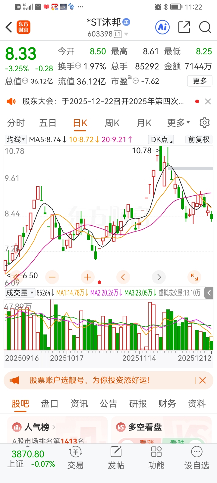 $*ST聆达(SZ300125)$ 逐步从聆达分仓到$*ST沐邦(SH603398)$,搏一下沐邦周末有结案公告或预重整受理公告,加上今天沐邦缩量 。$*ST美谷(SZ000615)$ $*ST景峰(SZ000908)$