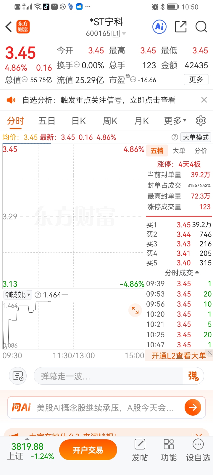 $*ST聆达(SZ300125)$ 宁科的填权不错,每天成一点,封单近40万手,买不进,达子股权登记前会有一波抢权。$*ST宁科(SH600165)$ $*ST东易(SZ002713)$