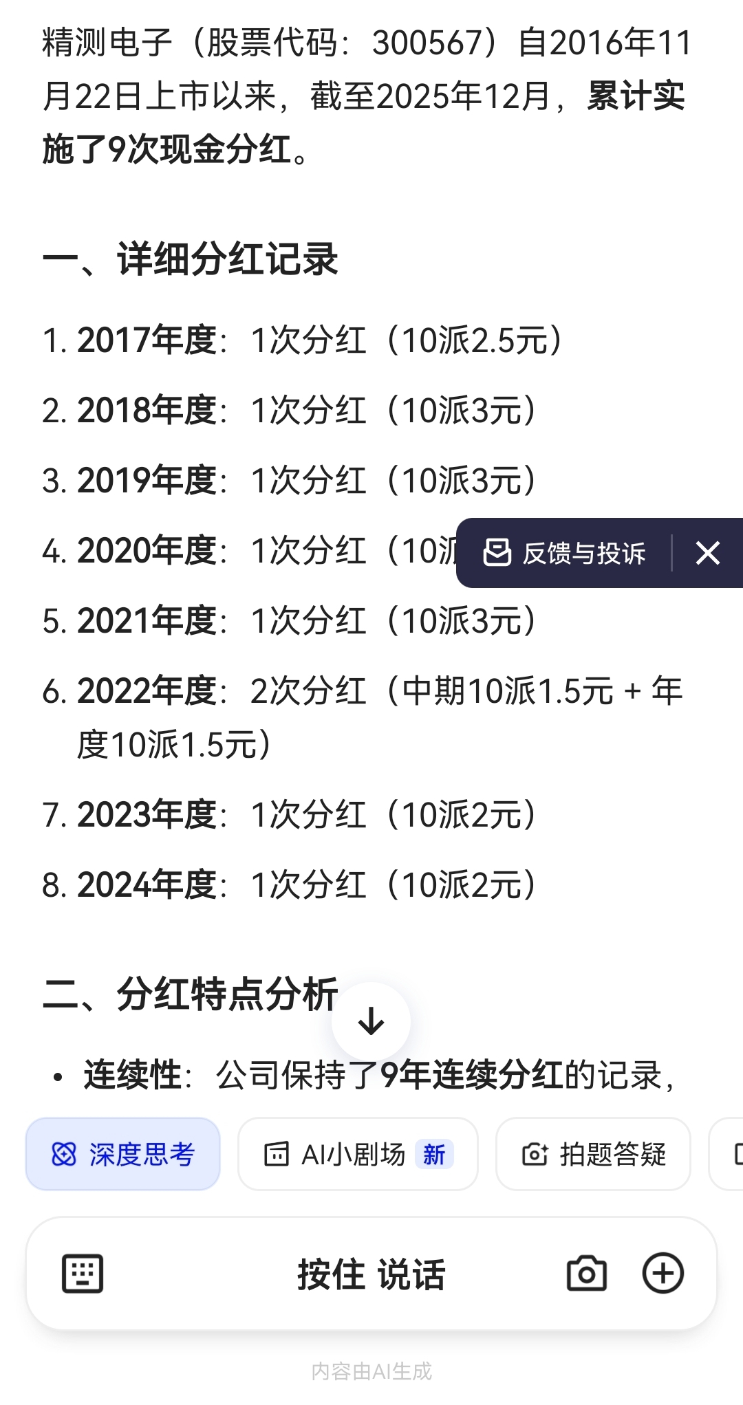 骞老板的精测电子自上市以来每年都坚持分红,快10年了,单是这点都超越大部分上市公