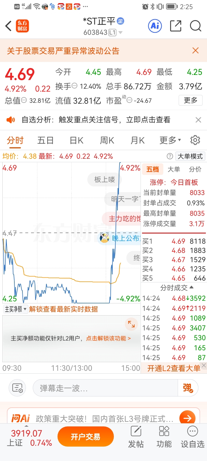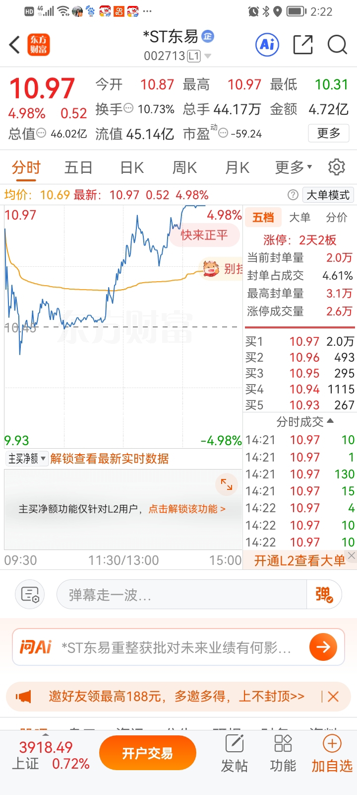 不错,地天板,二涨停,资金继续看好ST板块重整股。