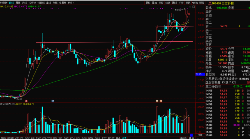 全志科技300458,芯片概念股,昨天小幅下跌,但老李继续在持股中,主要逻辑是全志科技短期涨幅并不大,从中线的角度看,它1月21日放巨量突破横盘4个月的平台,之后在高位横盘至20日线,然后再往上发展,老李应该它的走势是非常稳,一级一级的上涨,而且斜度开始增加。是大牛股的走势形态,而走强的逻辑是业绩大增好转,这是基金的运作模式,有核心的驱动逻辑,老李计划可以中短线持股,短期的调整目标应该在10日线,找到10日线的支撑后有可能会加速,这个还要有大盘的支持才行。昨天下午2点在全志科技跌幅2.5%的时候有大单拉升股价,尾盘重上红盘,这是主力在护盘,后市继续持股观察。