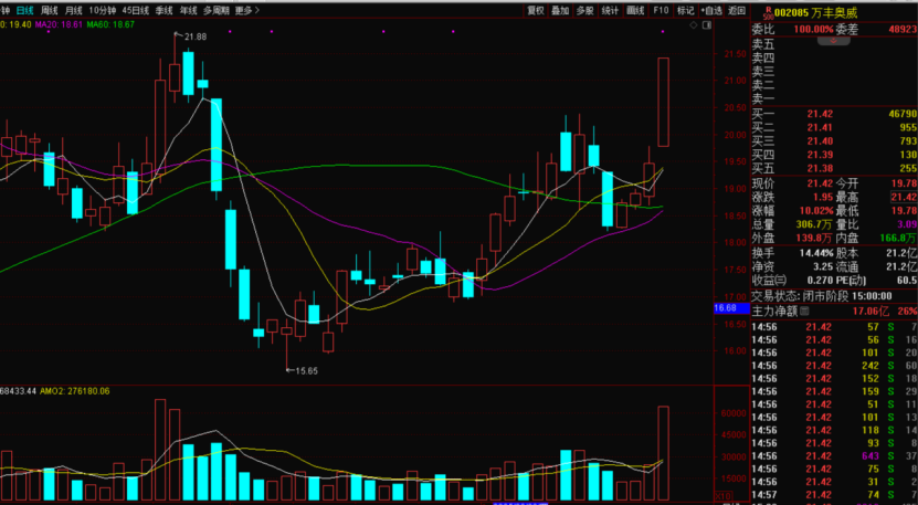 所以昨天万丰奥威被短线游资疯抢首板放量涨停,老李认为这老龙头非常活妖,资金认同低空经济的潜力,经过长时间调整,受新的利好刺激很有机会短线出现连板行情