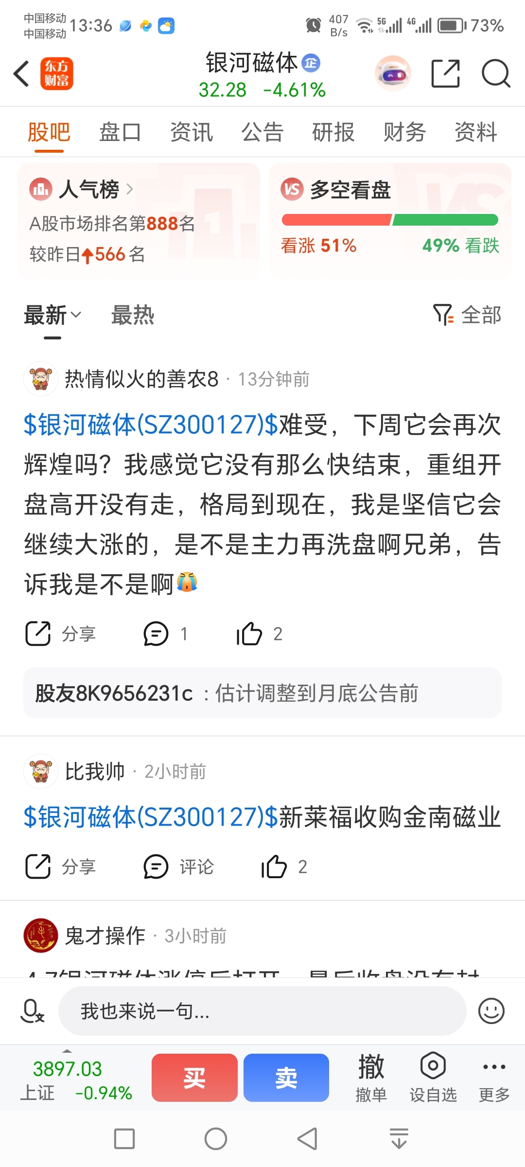 温馨提示: 1.根据《证券法》规定,禁止编造、传播虚假信息或者误导性信息,扰乱证券市场;2.用户在本社区发表的所有资料、言论等仅代表个人观点,与本网站立场无关,不对您构成任何投资建议。用户应基于自己的独立判断,自行决定证券投资并承担相应风险。《东方财富社区管理规定》