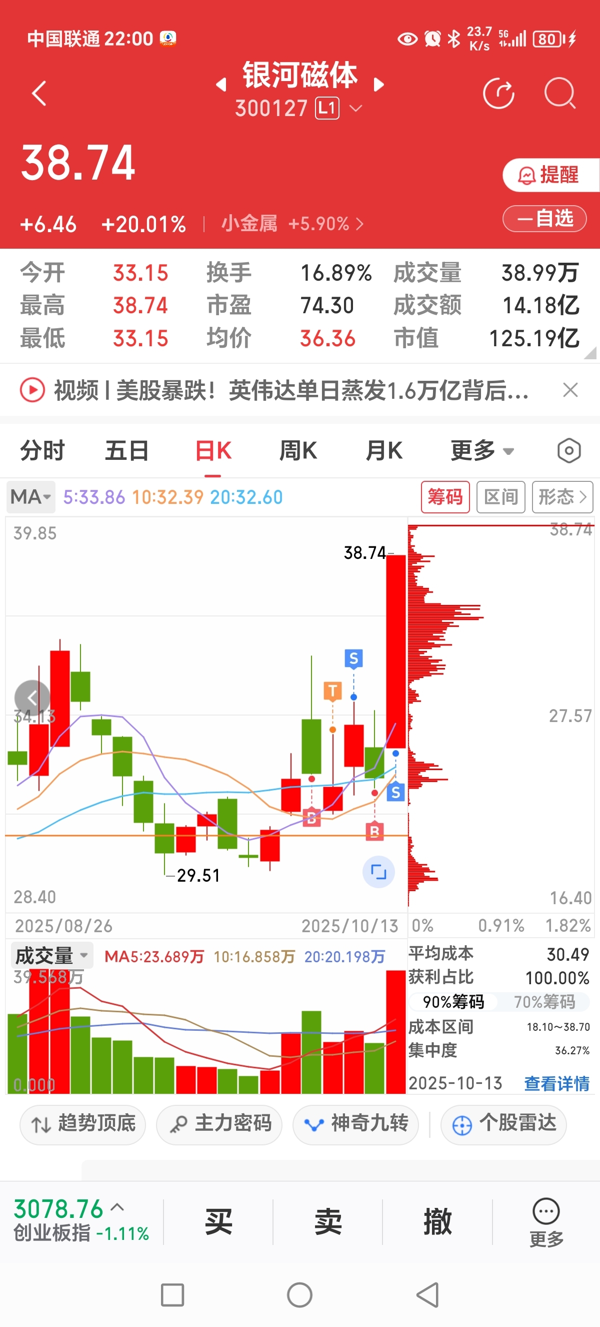 那天听说你重组复盘,我不顾一切,斩钉截铁买了你,买进去就套,上周五其实我是想做T,没成想变成加仓了,周末忐忑不安,今天很给面子,谢谢主力,谢谢银河小哥…
