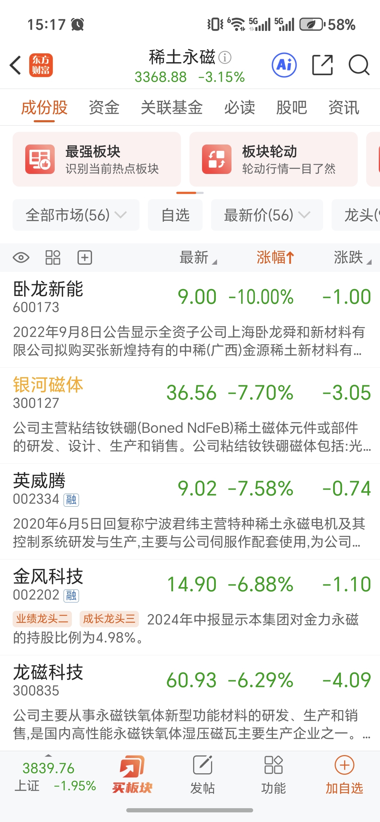 $银河磁体(SZ300127)$ 破股,前天跌幅第一,今天又当老二