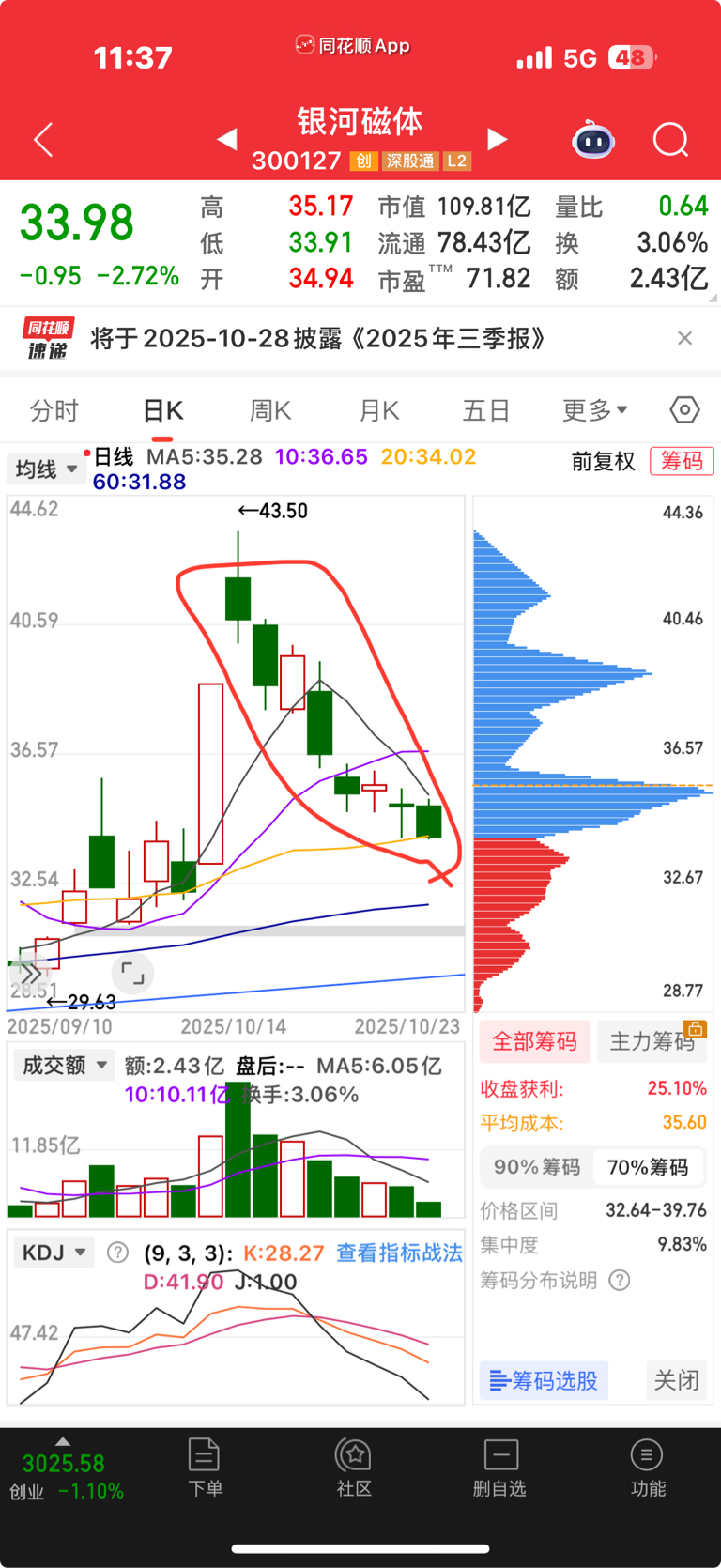 $银河磁体(SZ300127)$ 一口气跌了10块也是挺牛逼的