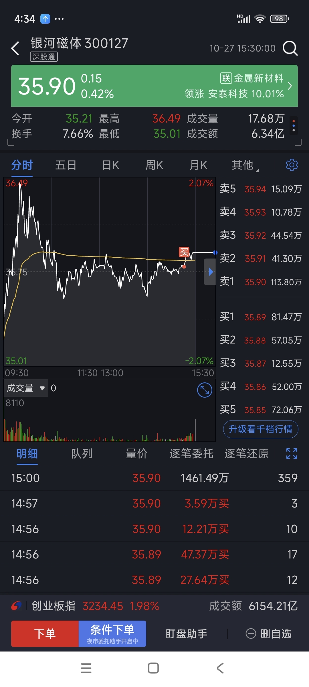 $银河磁体(SZ300127)$ 今天尾盘买入了
