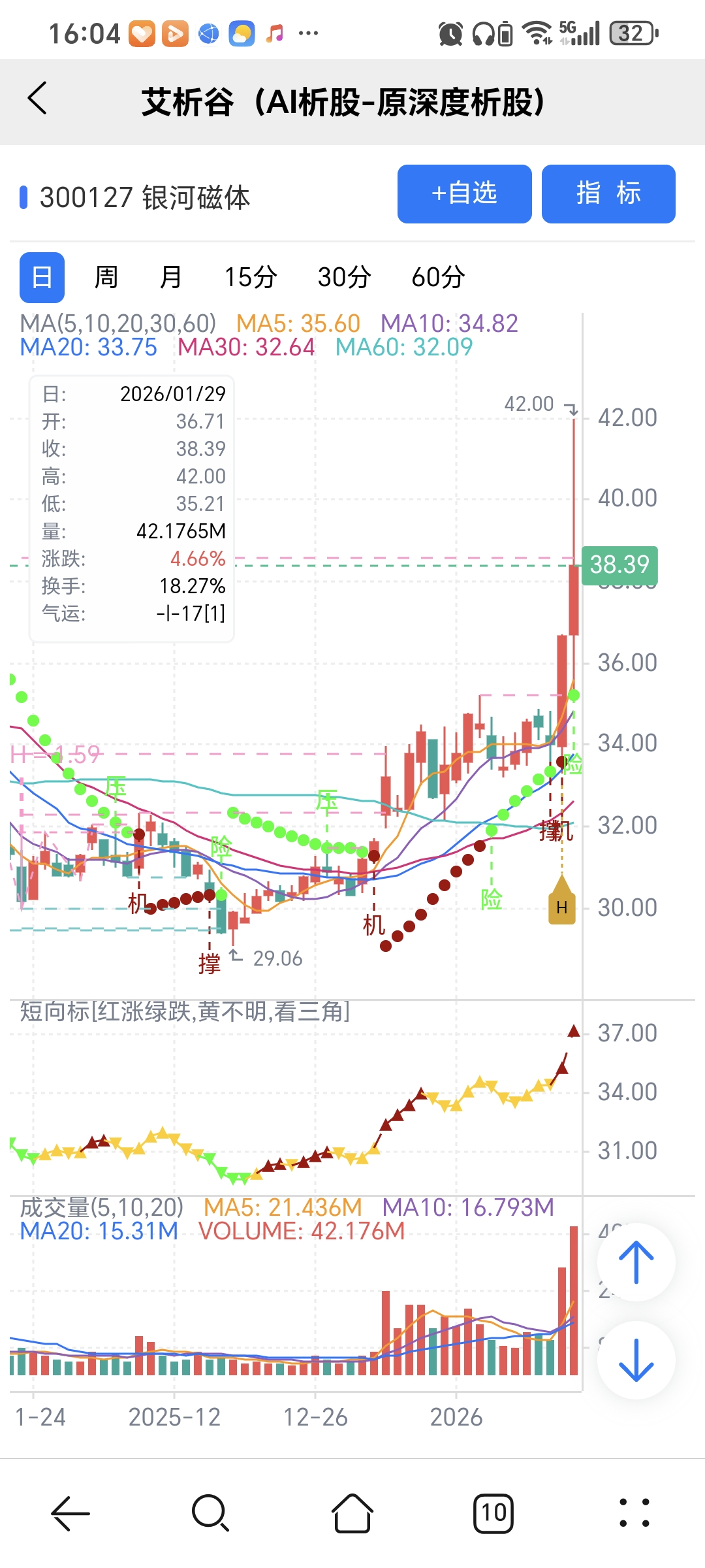 风险:股价下穿艾短波或红变绿、绿字。
