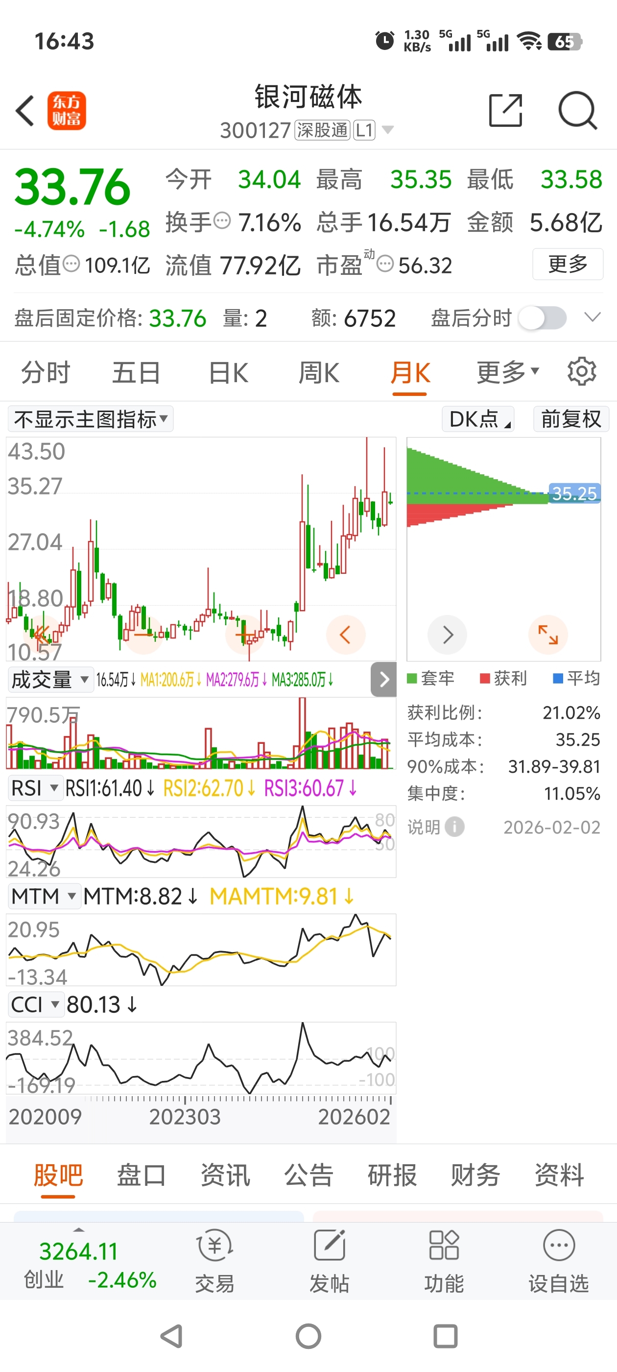 $银河磁体(SZ300127)$ 月线级别双顶吗?