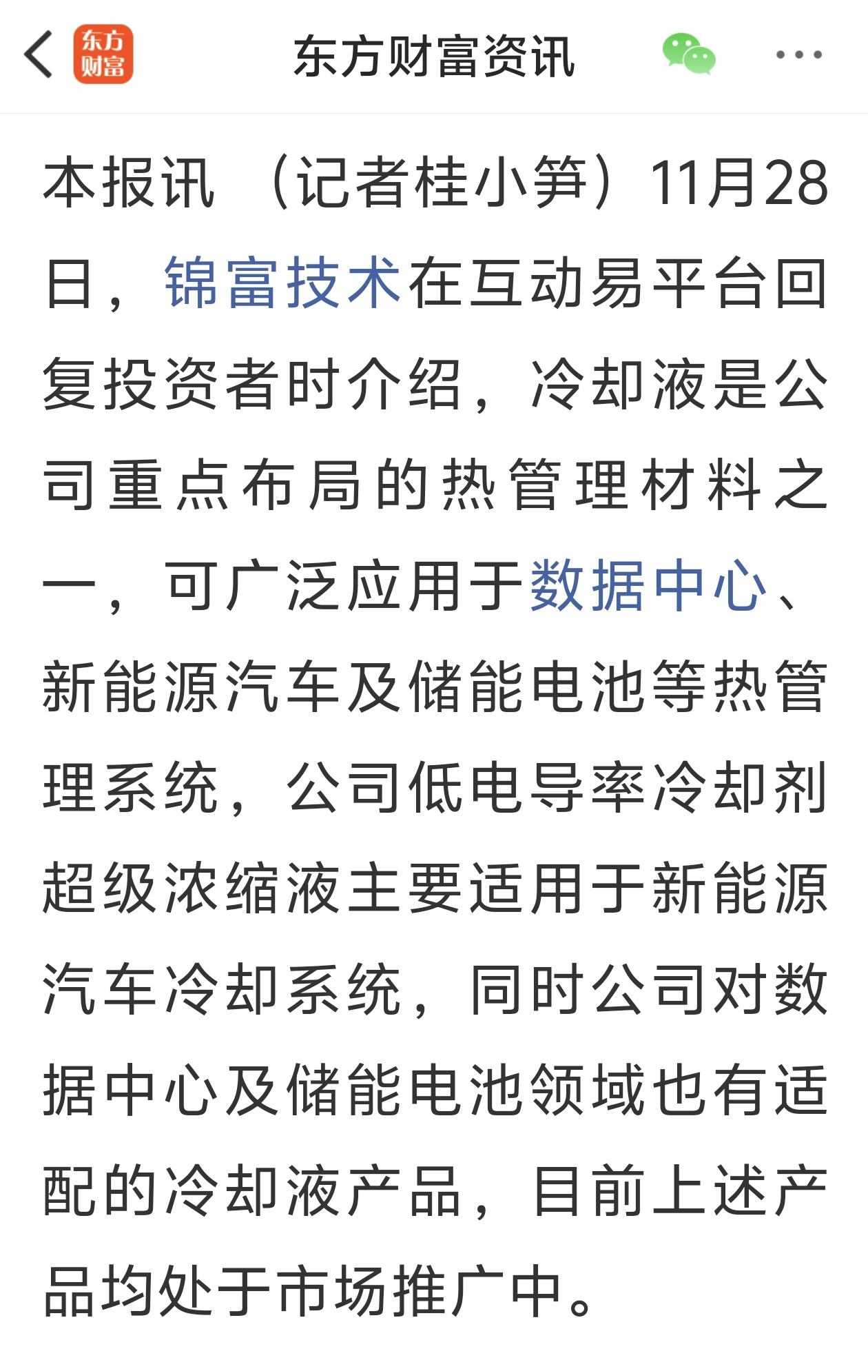 $锦富技术(SZ300128)$ 水水往低处流翻身农奴欲把歌唱。。欲速则不达等着轮动,关注低位一直未能轮动到市场上最便宜液冷液与英伟达机器人概念:拟斥资超10亿元加速转型将建设无氟胶、热管理冷却液等新材料!将依托园区新材料产业优势,加快业务重心从传统代工向拥有更高附加值的材料端转移,转型恰似一场“戴着镣铐的舞蹈”。坚定信心。慢慢变富,才是唯一,才是上上签。