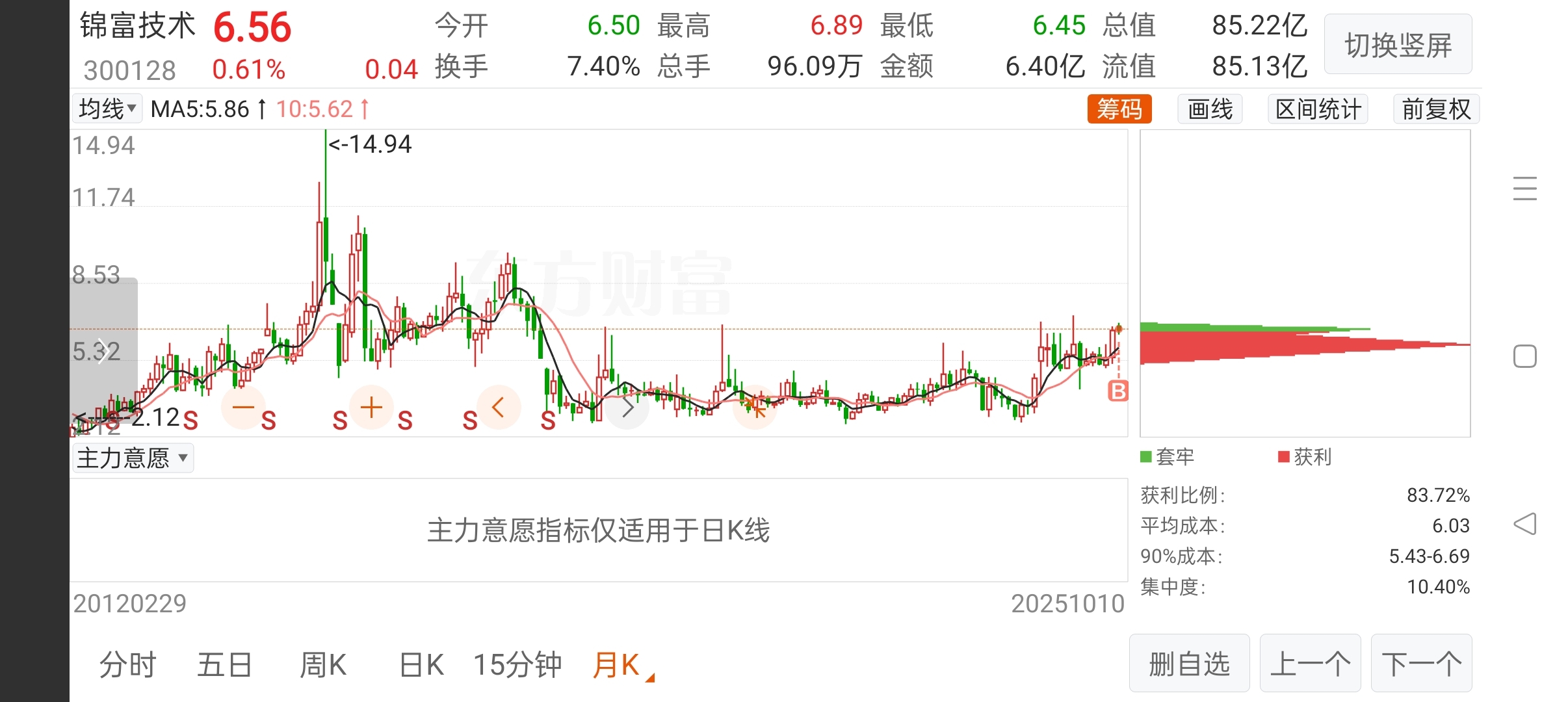 $锦富技术(SZ300128)$ 月线从2018起,最近放量抬出新平台,启动节奏,横有多长,竖有多高,坐稳了