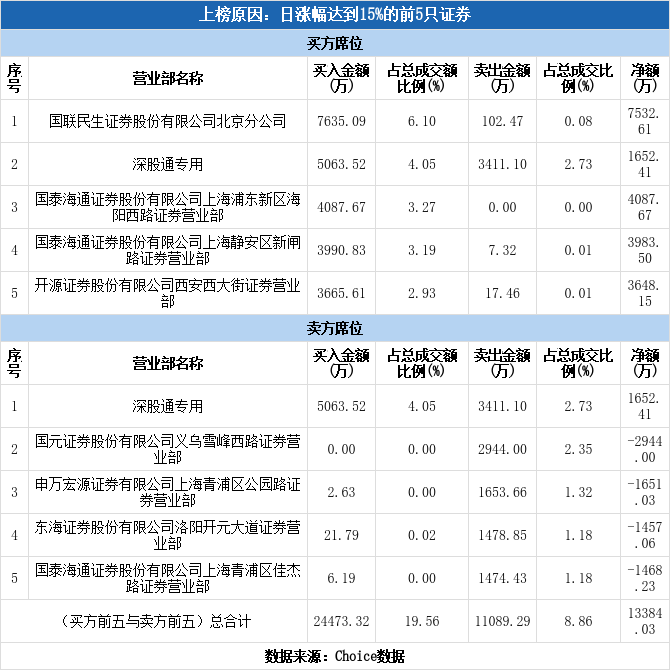 深股通现身龙虎榜,锦富技术涨停(10-24)